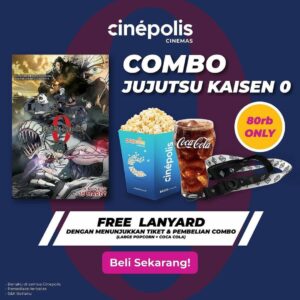 Sementara itu, Cinepolis akan memberikan Free Lanyard (gantungan leher gratis) kepada penonton. Caranya dengan membeli tiket Jujutsu Kaisen 0 dan Combo Snack (large pop corn + coca-cola).