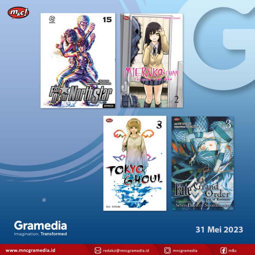 Jadwal Terbit Komik 31 Mei 2023, penerbit Elex Media Komputindo dan m&c! merilis beberapa judul komik. Komik tersebut sudah langsung tersedia di Gramedia baik itu toko fisik maupun toko online. Berikut adalah judul komik yang diterbitkan Elex Media Komputindo dan m&c!.