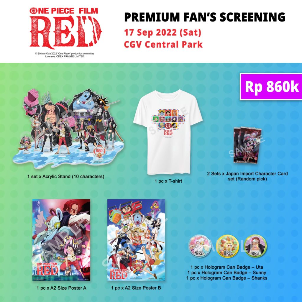 Besarnya animo penggemar terhadap penayangan One Piece Film Red, membuat pihak distributor untuk menambah layar Fan’s Screening. Sebelumnya telah diinformasikan bahwa Fan’s Screening digelar pada 19 September dan langsung habis terjual. Kali ini pihak CBI Pictures selaku distributor kembali menambah layar untuk tanggal 17 dan 18 September.