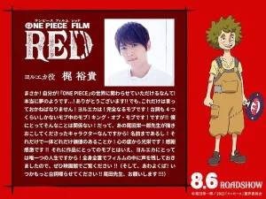 Situs web resmi untuk film anime One Piece Film Red mengungkapkan dua anggota pemeran baru untuk film tersebut pada hari Rabu (13/7). Anggota pemeran baru tersebut adalah:
