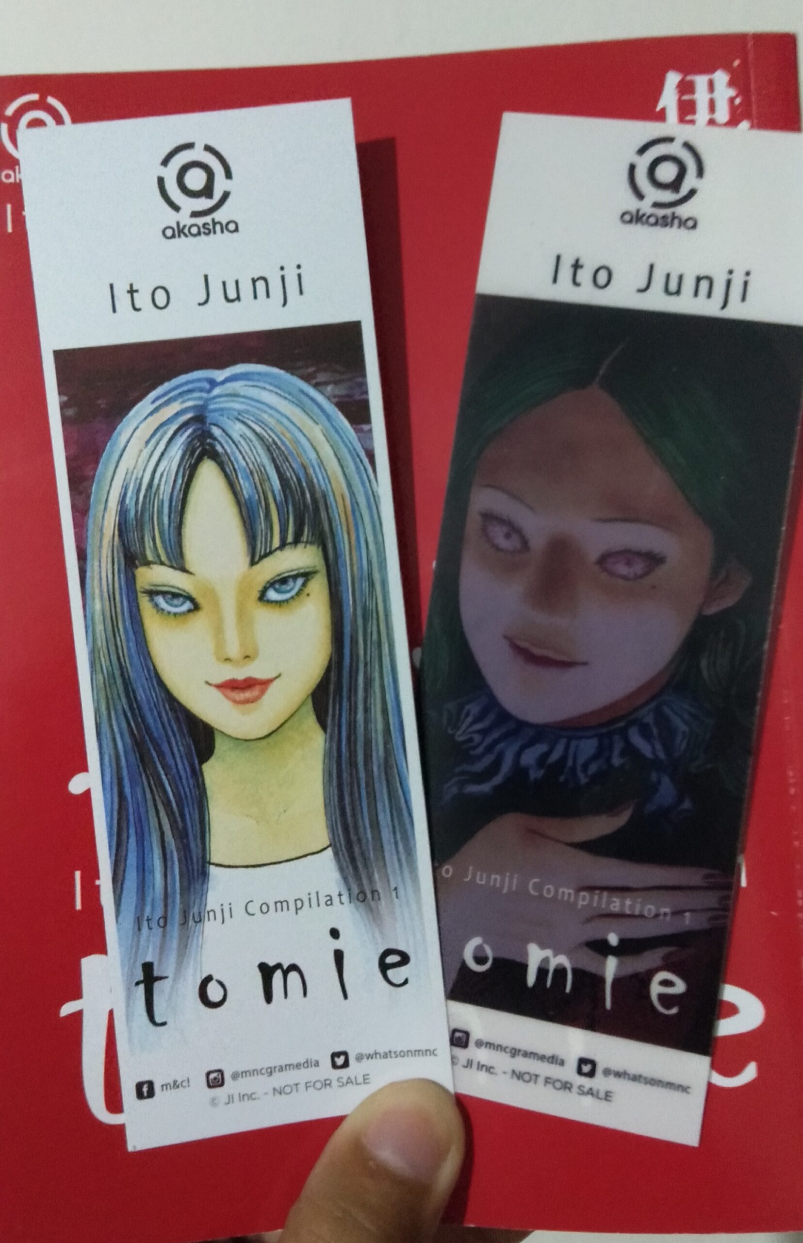 Tenang saja, walaupun Titipers tidak akan menemukan halaman yang berwarna di halaman pertama. Tapi, akan mendapatkan pembatas buku berbahan book paper dan menampilkan wajah cantiknya Tomie.