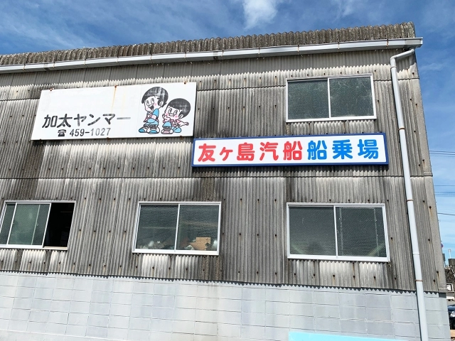 Saat mulai mendekati bangunan yang tampak pedesaan di dekat jalan layang, Titipers akan melihat tempat yang tepat alias tanda merah dan biru bertuliskan “Tomogashima Liner Jetty”.