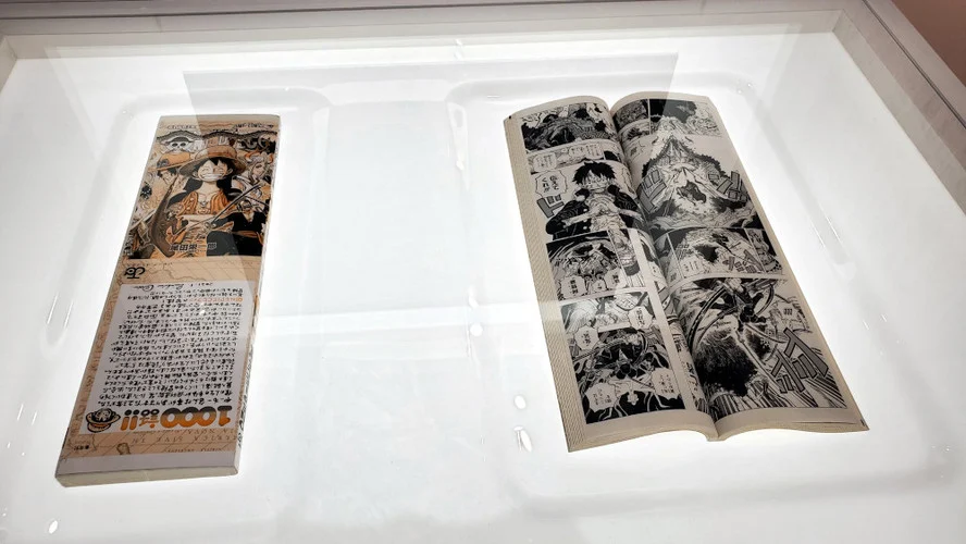 Salah satu area utama pameran berfokus pada pembuatan Bab 1000 One Piece. Pengunjung dapat melihat langkah-langkah mendetail mulai dari kertas kosong, sketsa kasar, gambar garis, proses pemeriksaan akhir, hingga cetakan akhir menggunakan pelat resin dan hasil cetakannya di majalah Weekly Shōnen Jump. Ini adalah pengalaman yang memperlihatkan kompleksitas dan dedikasi di balik setiap bab manga.