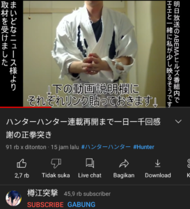 Sebelum adanya kabar tersebut, seorang penggemar di Jepang sana melakukan hal unik hingga Hunter x Hunter kembali rilis. Pria tersebut mengadakan live streaming sambil melakukan ribuan pukulan tiap hari dan meng-upload video tersebut ke kanal Youtube-nya.