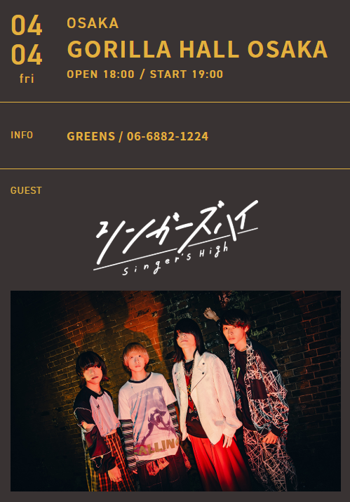 - Osaka: Gorilla Hall Osaka, 3 – 4 April 2025