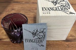 Penggemar Evangelion sekarang dapat bersulang dengan kerajinan tradisional lainnya, kali ini dalam bentuk gelas Edo kiriko (gelas khas zaman Edo), Evangelion Unit-01 yang dibuat dengan indah.