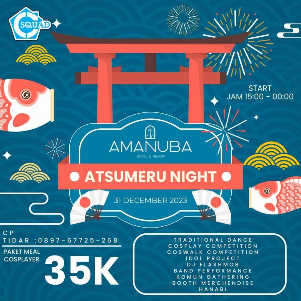 Di bulan Desember 2023 ini memiliki banyak event Jejepangan loh. Banyak daerah di seluruh Indonesia menyelenggarakan event Jejepangan, tak terkecuali di Jakarta, Bogor, Depok, Tangerang, Bekasi. Berikut adalah event Jejepangan Desember 2023 Jabodetabek: