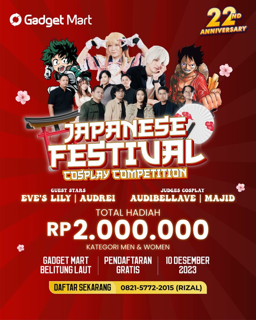 Siap-siap buat Japanese Festival Cosplay Competition pada 10 Desember 2023 di Gadget Mart Belitung! ![]()