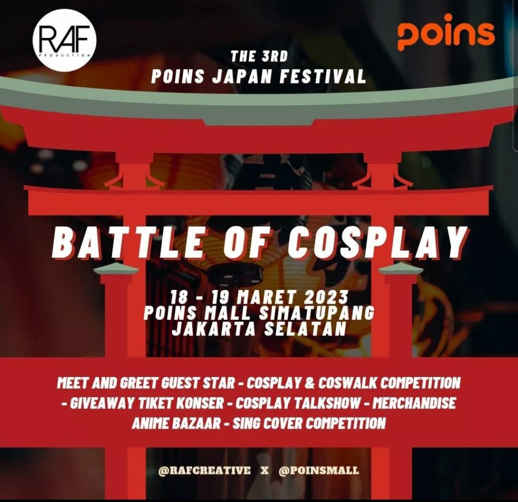 Di bulan Maret 2023 ini memiliki banyak event Jejepangan loh. Banyak daerah di seluruh Indonesia menyelenggarakan event Jejepangan, salah satunya di Jakarta, Bogor, Depok, Tangerang, Bekasi. Berikut adalah event Jejepangan Jabodetabek Maret 2023: