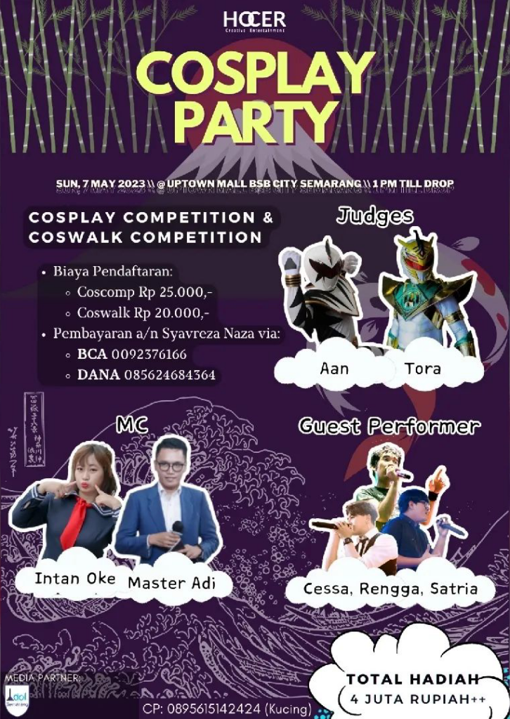 Di bulan Mei 2023 ini memiliki banyak event Jejepangan loh. Banyak daerah di seluruh Indonesia menyelenggarakan event Jejepangan, salah satunya di Jawa Tengah dan Yogyakarta. Berikut adalah event Jejepangan Jawa Tengah & Yogyakarta Bulan Mei 2023: