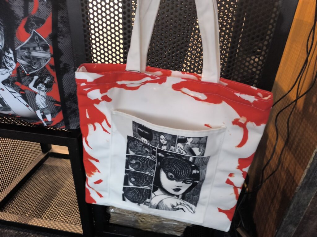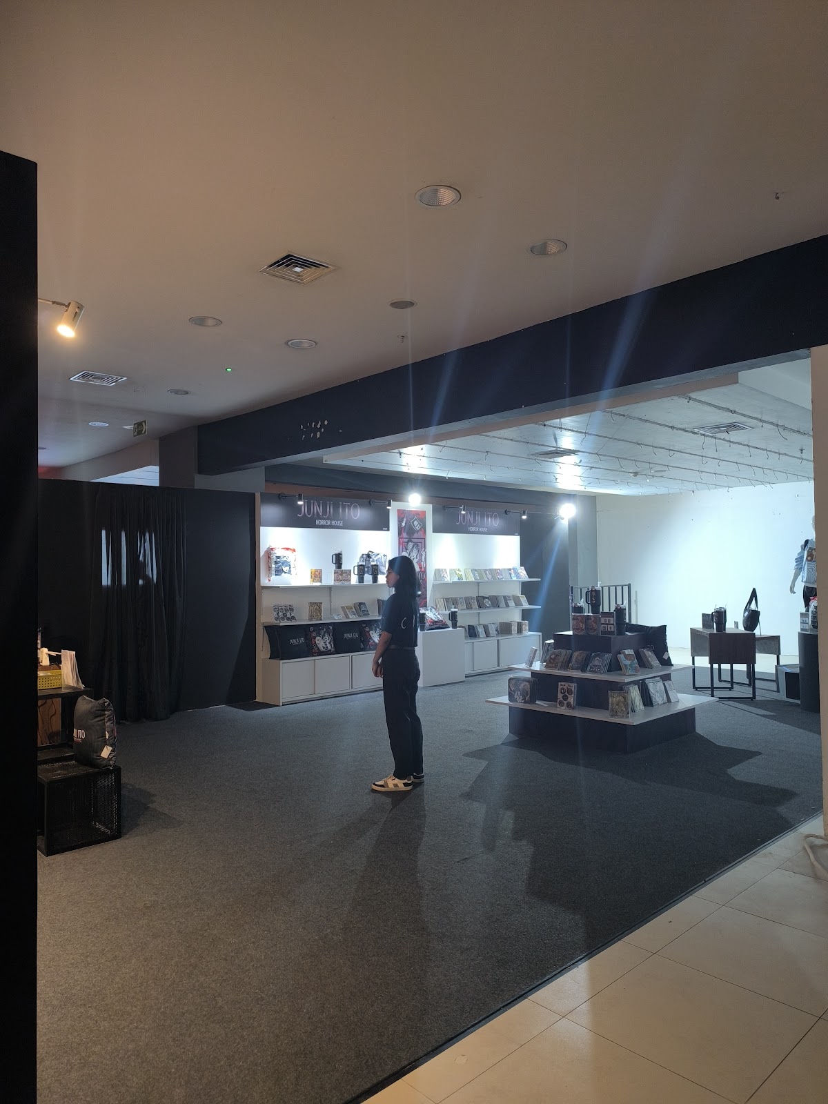 Setelah puas dengan Junji Ito showcase, pintu keluar berada di dalam ruangan hitam dan ada arah penunjuk, pengunjung langsung diarahkan ke toko retail dan pilihannya sangat banyak. Komik-komik Junji Ito yang diterbitkan oleh m&c! dan Elex Media Komputindo dijual lengkap. Selain itu juga ada merch official seperti tumbler, tote bag, bantal, pin, popsocket, gantungan kunci, dan mouse pad.