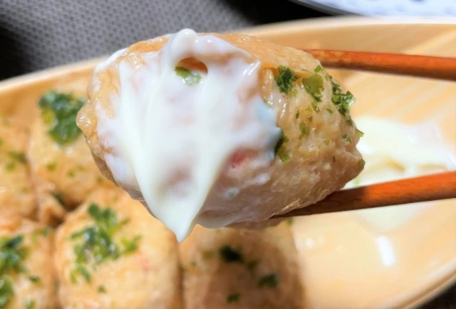 Celupkan bola ke dalam mayones, perpaduan antara takoyaki dan inarizushi, kalian tidak perlu khawatir rasa makanan ini membuat lidah kalian terbakar.