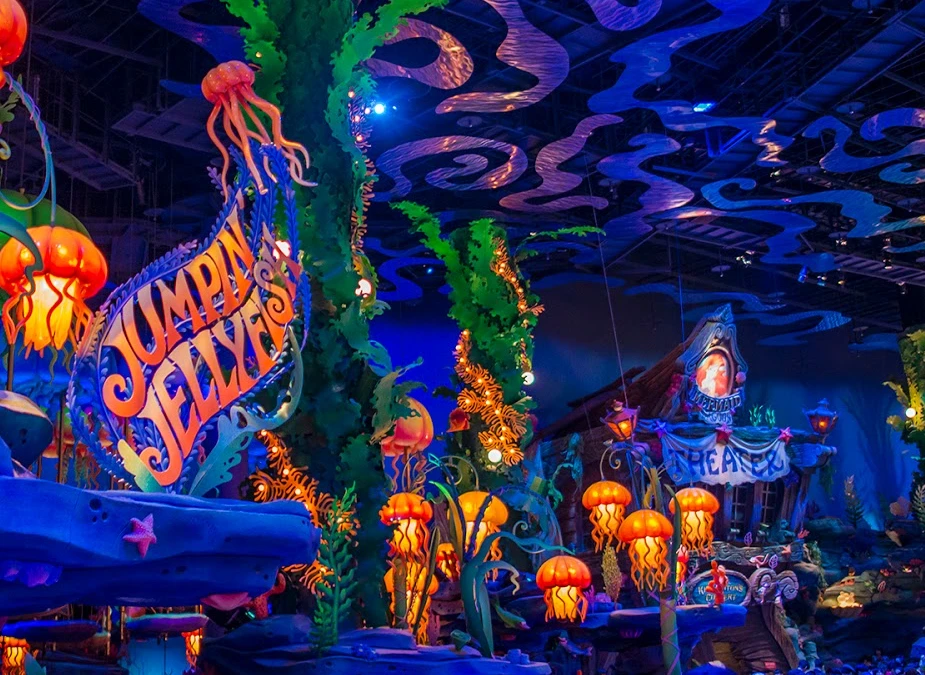 - Mermaid Lagoon: Dunia bawah laut yang mempesona yang terinspirasi oleh The Little Mermaid. Area ini memiliki wahana yang ramah anak seperti Blowfish Balloon Race dan Scuttle’s Scooters.