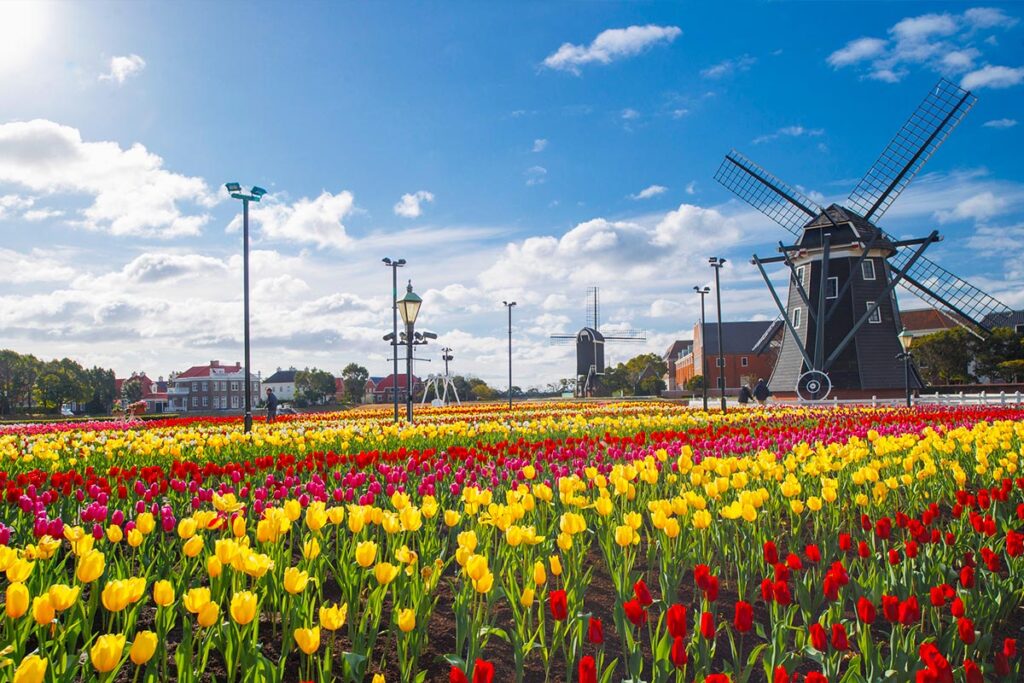 - Flower Road: Berjalan-jalanlah melintasi lanskap indah yang menampilkan bunga-bunga musiman seperti tulip dan mawar, sering kali berlatar belakang kincir angin dan arsitektur Belanda.