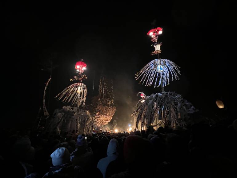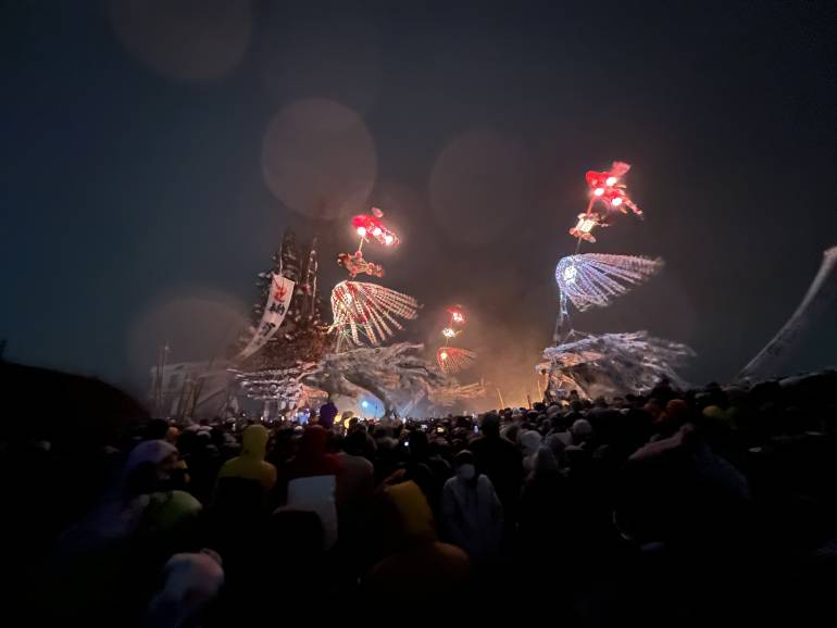 Festival ini terkenal karena pertarungan api spektakuler, di mana para pria yang telah mengonsumsi sake mencoba mempertahankan kuil kayu setinggi 18 meter dari serangan para penyerang bersenjatakan obor menyala. Ritual ini dilakukan untuk mendoakan keselamatan anak-anak dan kemakmuran desa. Suasana festival ini sangat dramatis dan menjadi tontonan luar biasa bagi wisatawan.