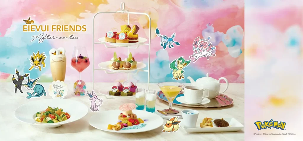Acara “Eevee Friends Afternoon Tea” yang diadakan serentak dalam waktu terbatas di 9 kota nasional akan memungkinkan para penggemar waralaba Pokemon dari seluruh Jepang untuk dapat menikmati kemeriahan Eeveelutions. Item menu yang terinspirasi oleh Eevee dan semua bentuk evolusinya, termasuk Vaporeon, Jolteon, Flareon, Espeon, Umbreon, Leafeon, Glacean, dan Sylveon.