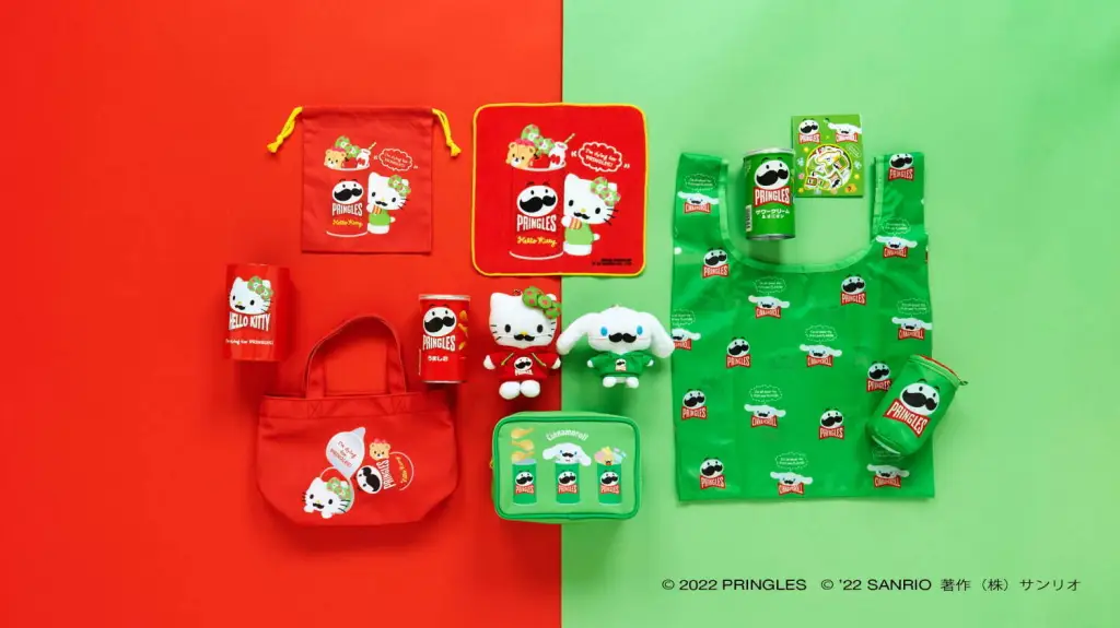Keripik kentang dan pita merah muda mungkin bukan pasangan yang terlintas di benak siapa pun, kecuali Sanrio dan Pringles. Kolaborasi ini tidak memperkenalkan rasa keripik baru, melainkan lini merchandise eksklusif yang terdiri dari kaus, boneka, hingga gantungan kunci yang menampilkan Hello Kitty bercosplay sebagai Mr. Pringles, lengkap dengan kumis melengkung, dasi kupu-kupu meraj, dan kepala bundar khas maskot keripik legendaris itu.
