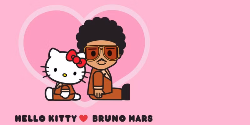 Para penggemar mungkin akan memaklumi kalau ada yang mengira ini cuma khayalan belaka, tetapi kolaborasi ini benar-benar terjadi. Hello Kitty dan Bruno Mars pernah bekerja sama merilis merchandise edisi terbatas yang memadukan vibe retro nan keren khas Bruno dengan palet pastel manis ala Sanrio. Kolaborasi ini dirilis lewat brand fashion Bruno, Ricky Regal, dan menampilkan Hello Kitty versi super swag di berbagai item seperti hoodie, jaket, sampai topi bucket.