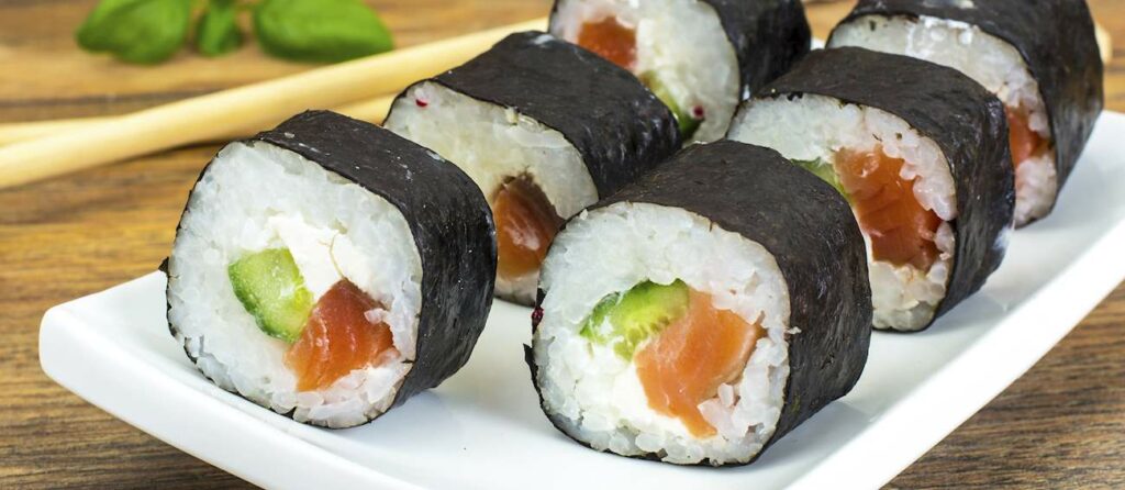Makizushi, yang berarti sushi gulung, jenis sushi yang paling terkenal. Diciptakan pada abad ke-18, jenis sushi ini terdiri dari nori, selembar rumput laut kering, yang dilapisi nasi yang diberi cuka. Berbagai jenis ikan, ayam teriyaki, dan sayuran segar atau matang diletakkan di tengah nasi, lalu digulung dengan bantuan alas bambu yang lentur.