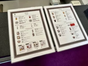 Ada banyak minuman dan makanan ringan di menu untuk menghiburmu selama perjalanan.