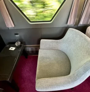 Sisi lain yang mengejutkan dari perjalanan ini adalah betapa nyamannya tempat duduknya. Kereta dengan tempat duduk itu empuk dan sangat nyaman. Dengan harga yang cukup murah kamu bisa menikmati perjalanan dengan ornamen yang mengagumkan dari kereta Spacia X.