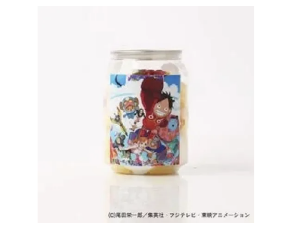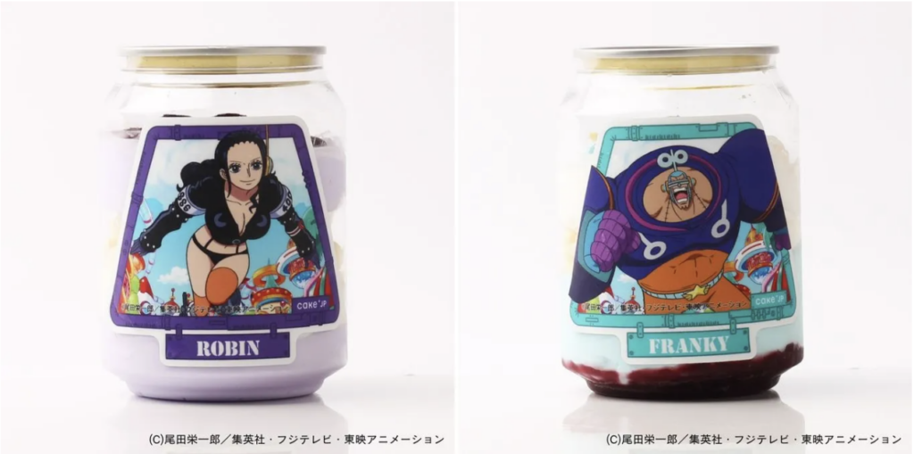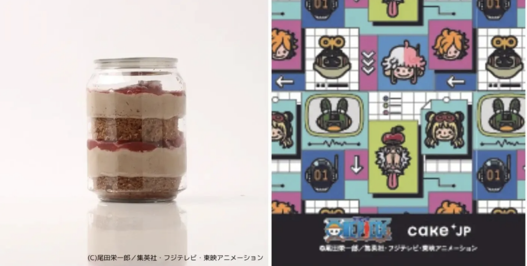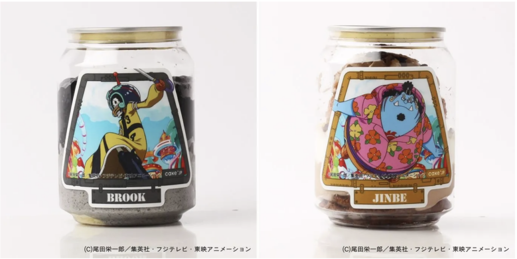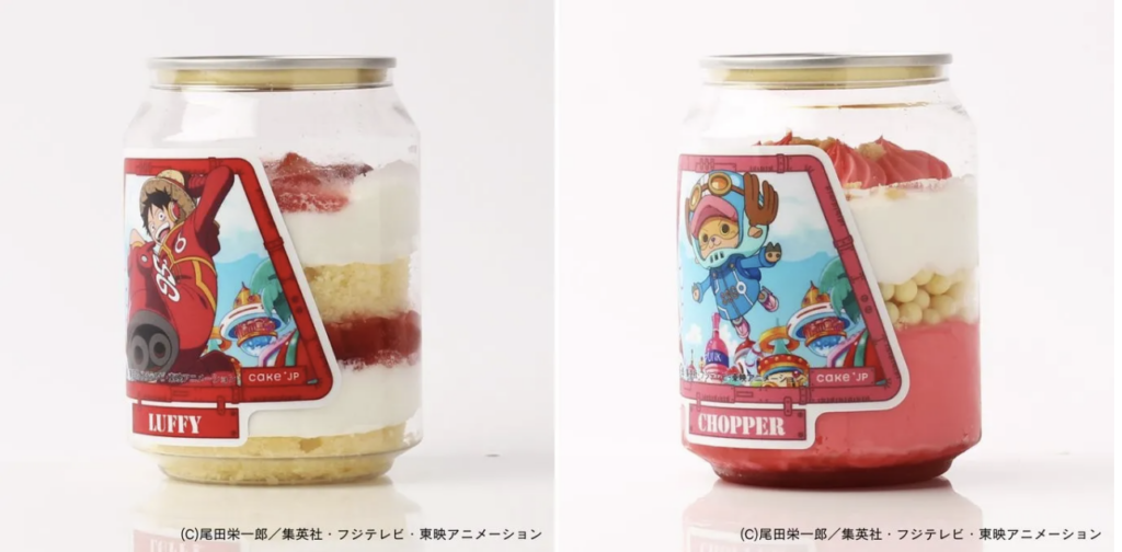 Ini berkat kolaborasi pembuat kue kreatif yang berbasis di Tokyo, Cake.jp, dengan waralaba populer tersebut. Mesin-mesin tersebut dilengkapi 17 kue yang terinspirasi dari Luffy dan karakter lainnya, dengan bahan-bahan yang dipilih sesuai dengan deskripsi para karakter, ditambah ilustrasi label yang menampilkan Bajak Laut Topi Jerami dalam pakaian Arc Egghead mereka.