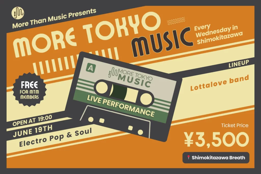 Acara musik ini akan Titipers temukan di jantung Shimokitazawa. More Than Music mengadakan acara reguler “More Tokyo Music” setiap Rabu jam 7 malam hingga 11 malam. Dengan pertunjukan live yang dikurasi dengan cermat, mereka menawarkan perjalanan musik yang unik setiap minggunya.