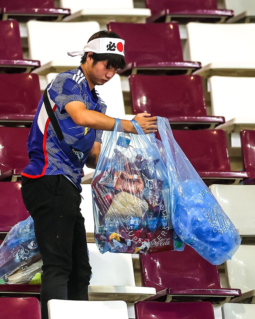 Setelah kemenangan dramatis Jepang atas Jerman dengan skor 2-1, tentu saja menjadi kebahagian tersendiri dari fans Jepang. Namun, hal itu tidak lantas membuat mereka terlalu berlarut merayakan kemenangan. Seperti pagelaran Piala Dunia tahun 2018 lalu, Fans Jepang pungut sampah di stadion setelah pertandingan selesai.
