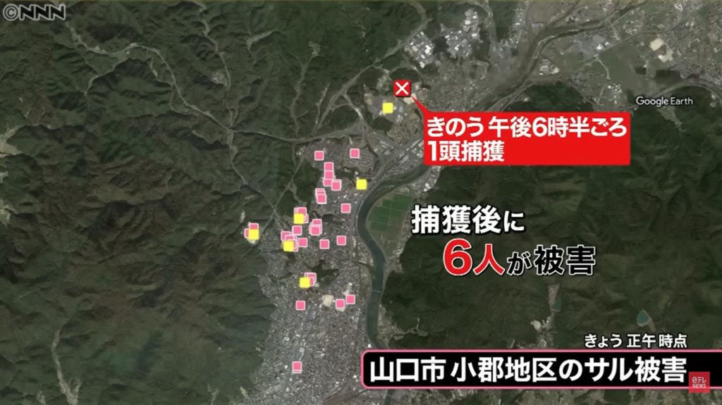 Hal-hal yang kurang mengenakkan terjadi pada warga Kota Yamaguchi akhir-akhir ini, di mana penduduk lingkungan Ogori telah menjadi sasaran serangan monyet selama tiga minggu.