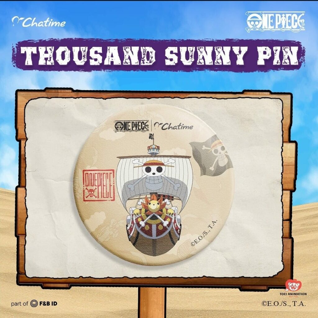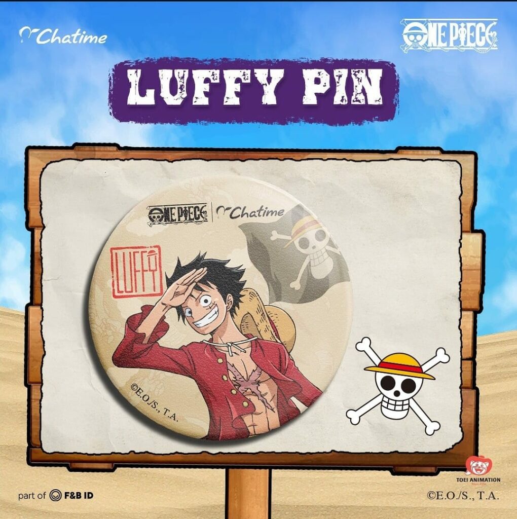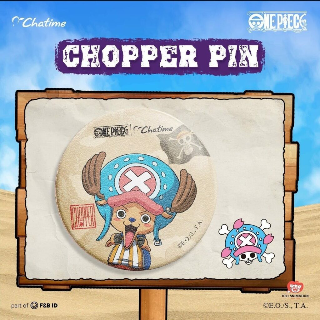 Lengkapi koleksi One Piece-mu dengan pin eksklusif yang bisa Titipers temukan di seluruh gerai Chatime! Pilih karakter favoritmu dari Luffy yang penuh semangat hingga Chopper yang lucu.