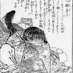 Sebuah ukiyo-e oleh Yoshitoshi menggambarkan pengikut Minamoto no Yorimitsu, Watanabe no Tsuna, Urabe no Suetake, Usui Sadamitsu, dan Sakata no Kintoki serta bangsawan Fujiwara no Yasumasa melawan Shuten dōji di Oeyama