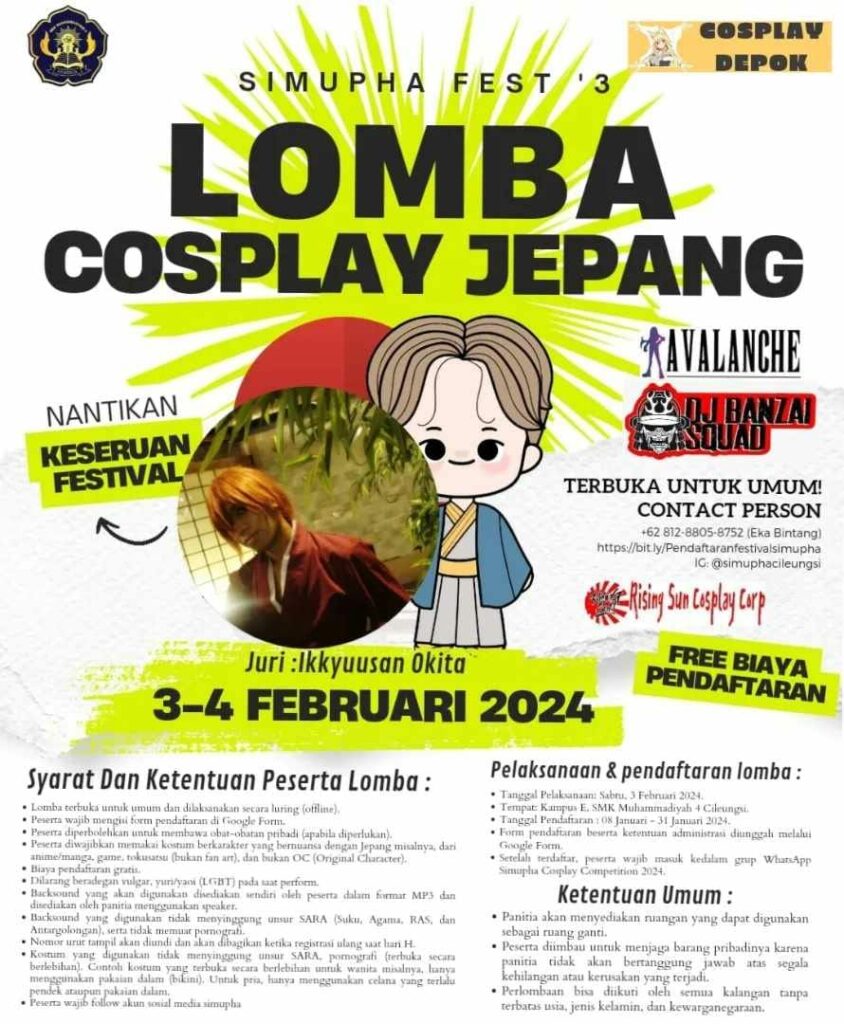 Di bulan Februari 2024 ini memiliki banyak event Jejepangan loh. Banyak daerah di seluruh Indonesia menyelenggarakan event Jejepangan, tak terkecuali di Jawa Tengah & Yogyakarta. Berikut adalah event Jejepangan Februari 2024 Jawa Tengah & Yogyakarta: