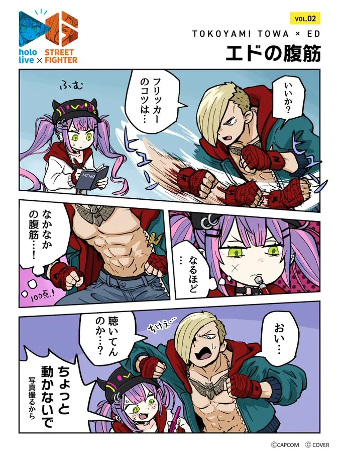 Tokoyami Towa menunjukkan kekaguman terhadap kekuatan fisik dan teknik tinju dari Ed, karakter baru dalam Street Fighter 6.