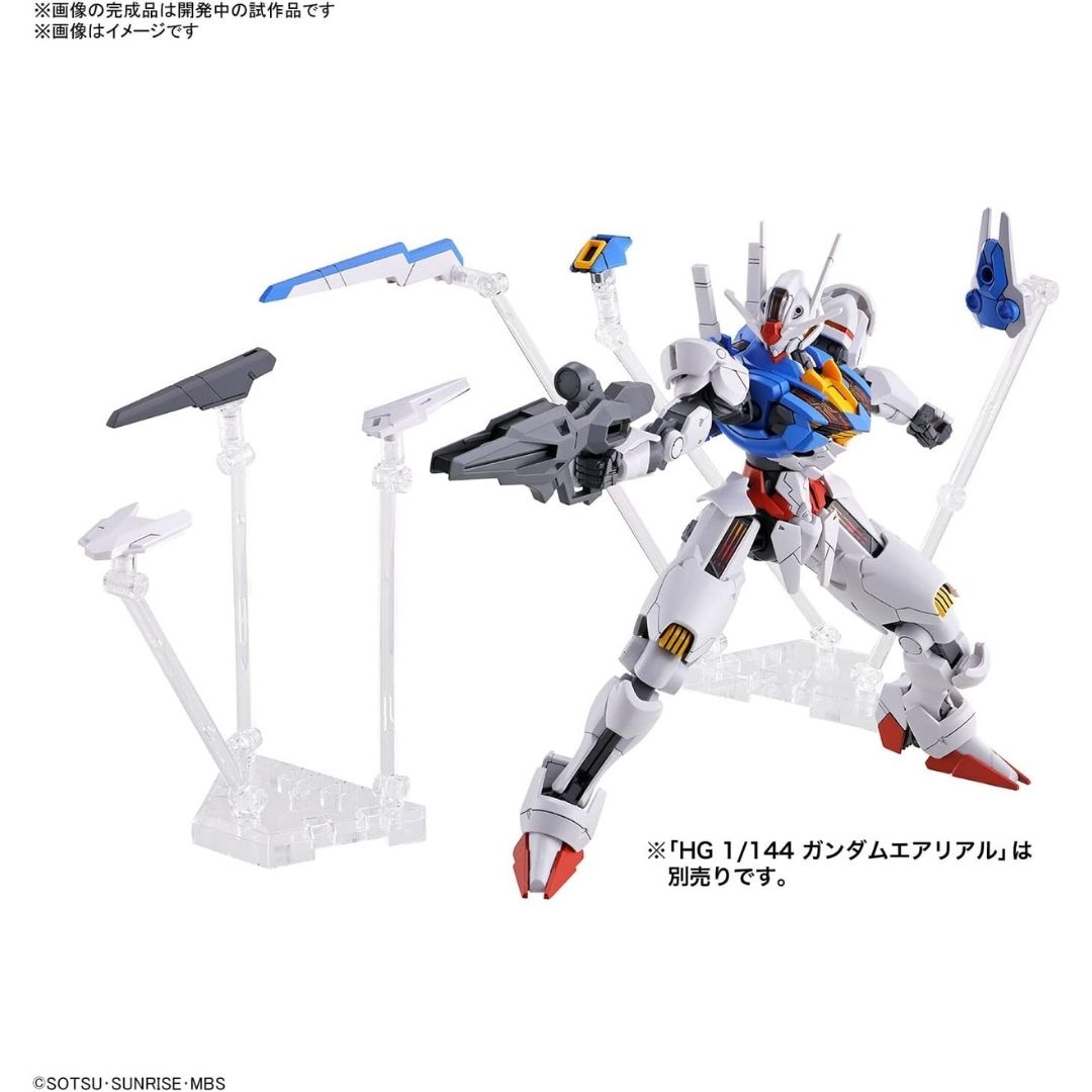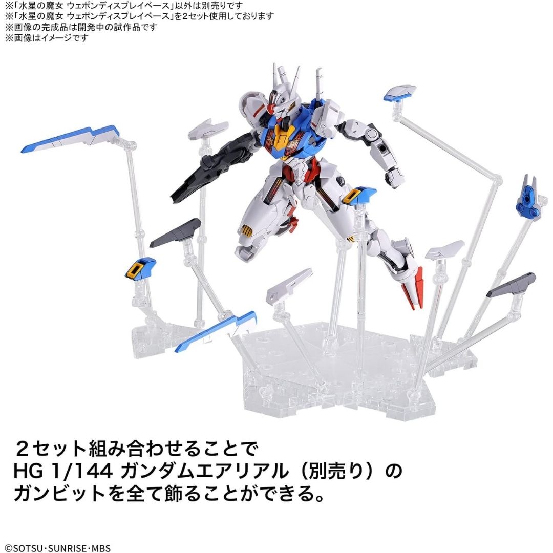 Action Base Witch of Mercury adalah stand senjata original Bandai untuk seri Gundam Witch of Mercury yang menampilkan Gambit weapon melayang secara dinamis, dengan material transparan agar display HG Gundam Aerial terlihat rapi dan profesional.