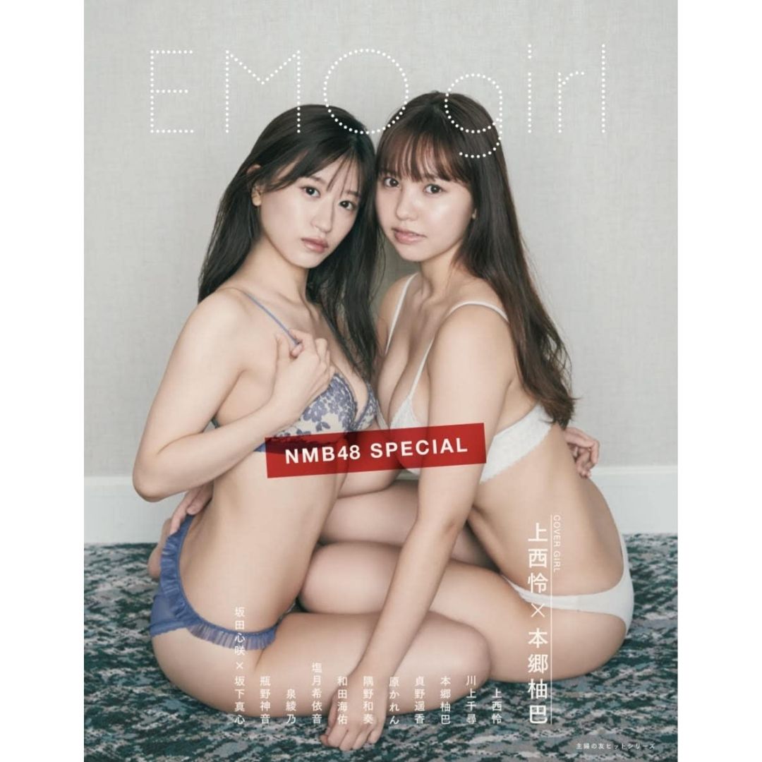 Edisi perdana EMO girl NMB48 Special hadir dengan Amazon Limited Cover menampilkan duet Uenishi Rei dan Hongo Yuba. Photobook gravure ini mempersembahkan total 12 member NMB48 dengan konsep foto penuh pesona: swimsuit, lingerie, casual underwear, camisole, hingga loungewear.