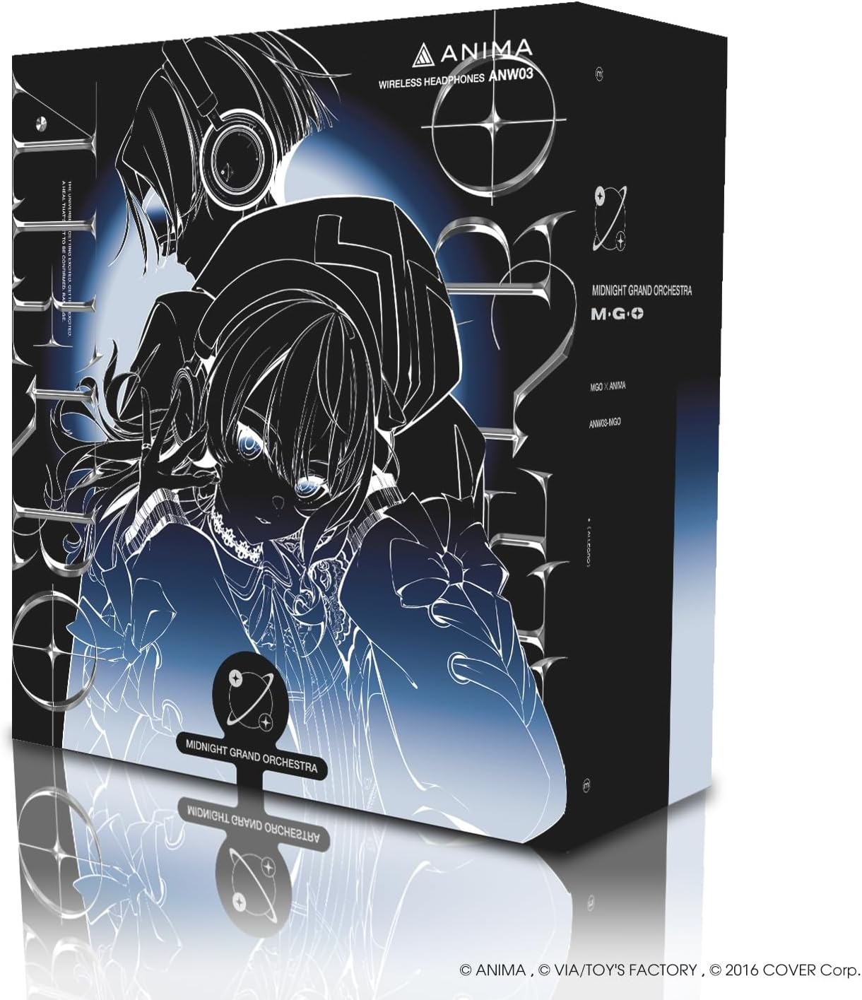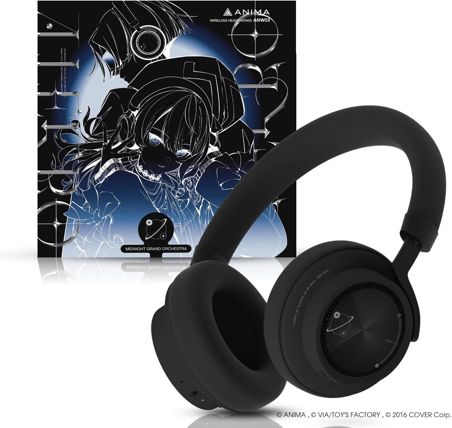 - [Desain Eksklusif Edisi ANW03MGO Ver.] Headphone ini menampilkan berbagai desain khas dari Midnight Grand Orchestra. Warna utama bodi adalah “Midnight Black” yang terinspirasi dari malam-malam Midnight Grand Orchestra. Housing headphone memiliki lapisan matte, sementara headband berwarna hitam baked untuk memberikan kesan gelap. Selain itu, logo Midnight Grand Orchestra tercetak perak di seluruh headphone, dan ornamen plat di bagian atas headphone diukir untuk menciptakan desain yang menyerupai dua elemen dari Midnight Grand Orchestra.