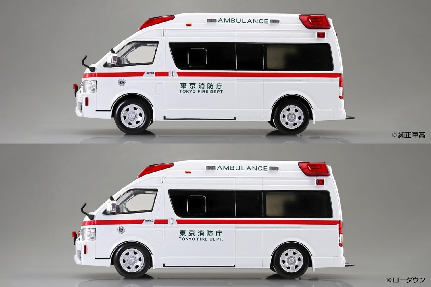Lengkapi koleksi kendaraan Anda dengan model ambulans Aoshima Toyota Hi-Medic yang keren dan mudah dirakit ini!