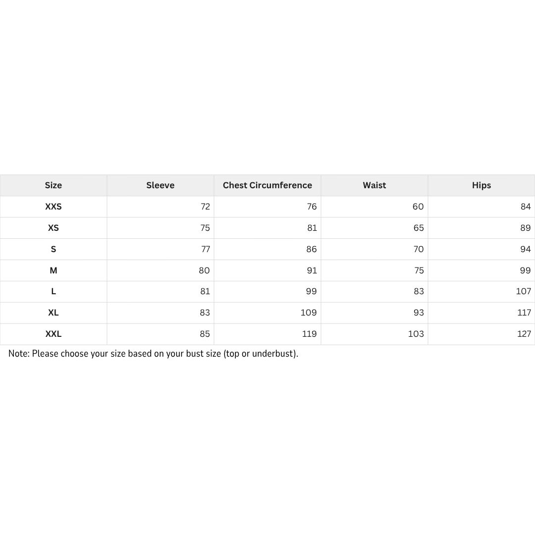- Panjang belakang: ±69 cm (size S, dapat berbeda tiap size)