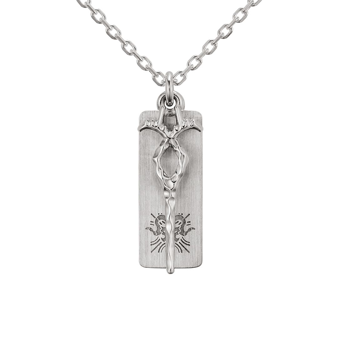 Arknights Motif Necklace (Eyjafjalla) Silver dengan desain memukau yang menggabungkan senjata ikonik Eyjafjalla dengan lambang kampnya, menciptakan perhiasan yang merepresentasikan kekuatan dan keanggunan. Terbuat dari silver 925 berkualitas tinggi, kalung ini nyaman dipakai sehari-hari dan memberikan tampilan yang percaya diri.