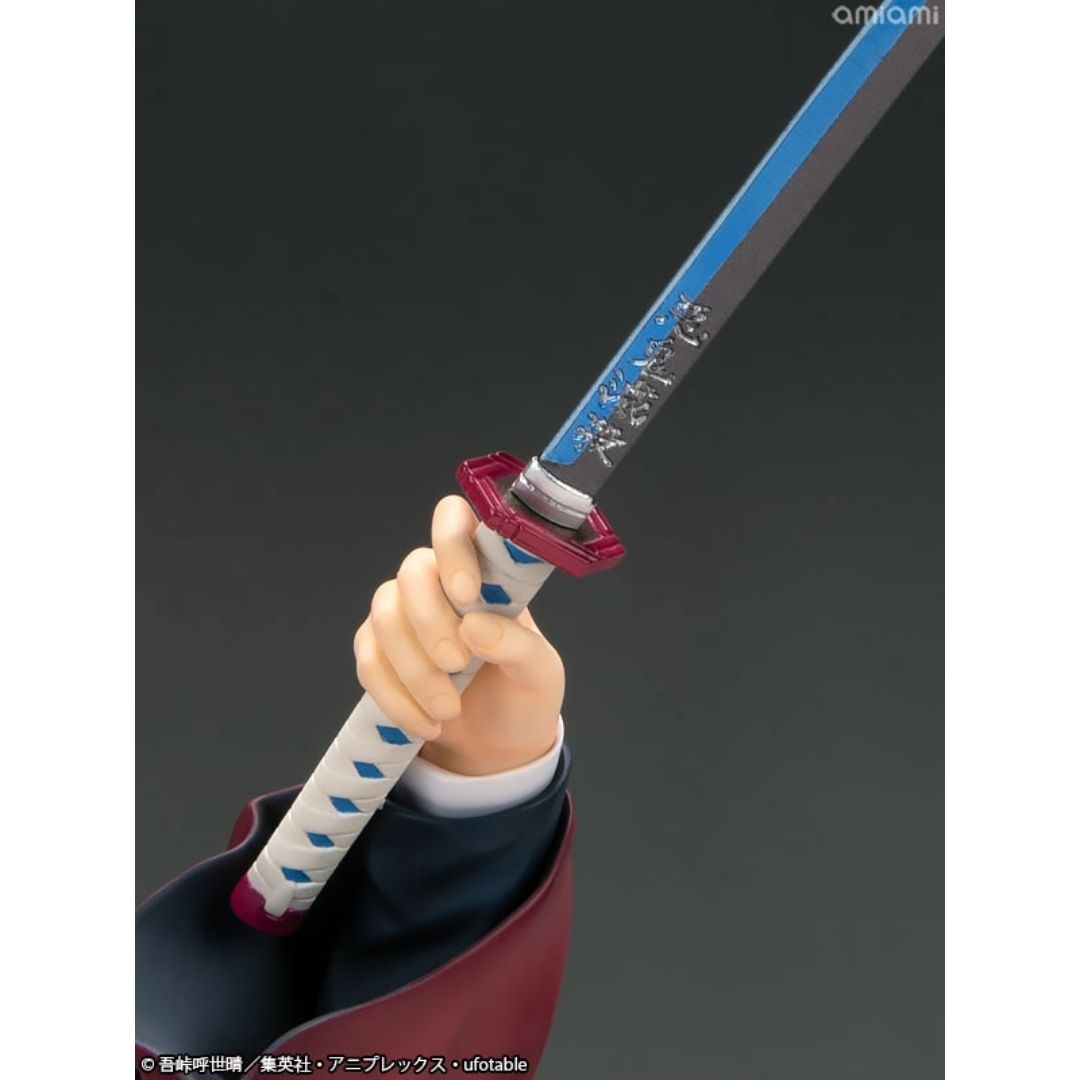 Rekreasi karakter Giyu Tomioka dari Demon Slayer hadir dalam ARTFX J Giyu Tomioka figure skala 1/8, menampilkan pose serangan elegan dengan haori mengalir dan base bergelombang, detail presisi di pedang Nichirin menjadikannya koleksi wajib bagi penggemar.