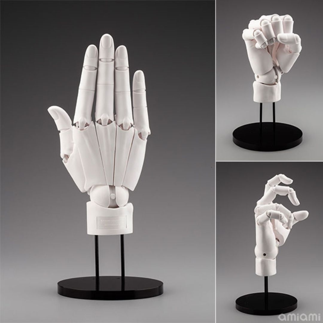 Diciptakan di bawah pengawasan ketat Takahiro Kagami dan dipahat oleh Shirohige Sou, sculptor representatif dari Kotobukiya, model tangan ini menawarkan rentang gerak realistis yang meniru pergerakan tangan manusia. Struktur khususnya memungkinkan tangan untuk dikunci pada posisi yang natural dan mencegah gerakan yang tidak mungkin dilakukan oleh tubuh manusia, sehingga memudahkan siapa saja untuk menciptakan pose yang alami.