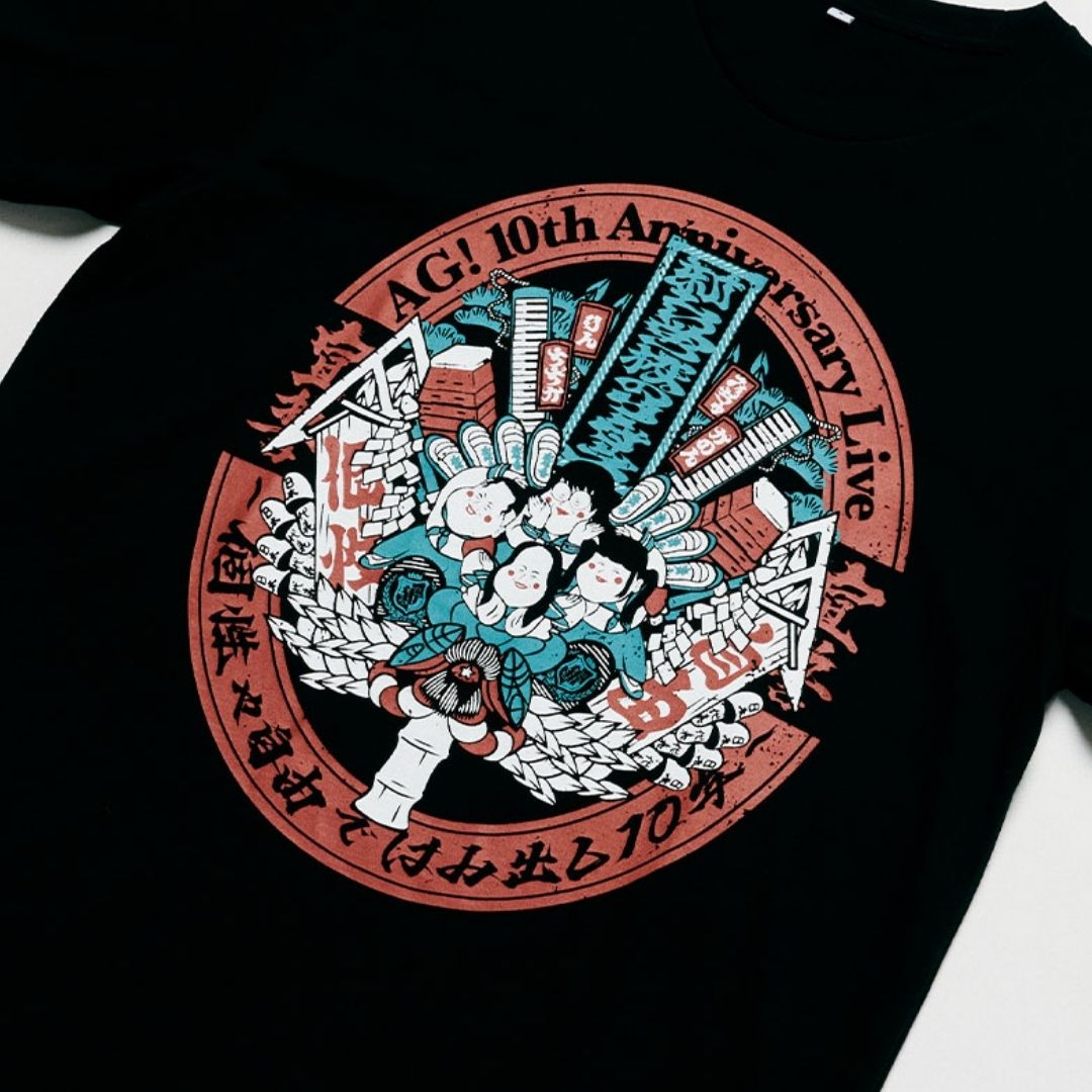 Rayakan 10 tahun Atarashii Gakkou! (AG!) dengan kaus spesial ini! Didesain dengan motif Kumade (garu keberuntungan), kaus ini melambangkan harapan baik dan perayaan ulang tahun ke-10 yang meriah. Bagian belakang kaus memiliki desain eksklusif khusus konser, lengkap dengan judul konser dan tanggalnya.