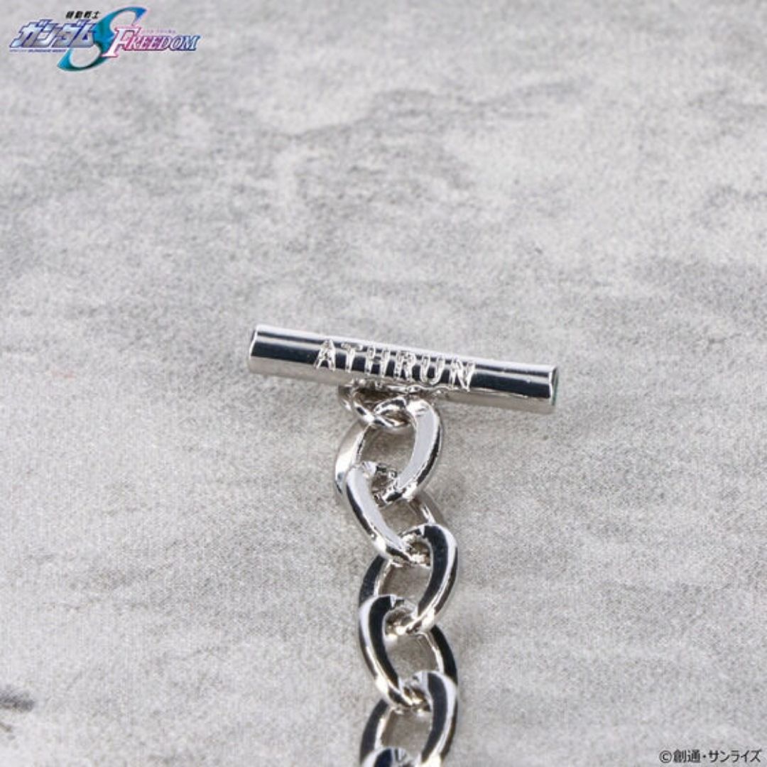 - Desain: Rantai mantel dengan T-bar bertuliskan nama dan tanggal lahir Athrun, serta batu berwarna yang melambangkan warna matanya.