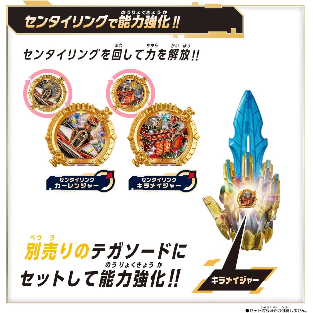Bandai DX Sentai Ring Set Carranger & Kiramager menghadirkan cincin transformasi dari Gozyuger. Dengan gimmick rotasi 180°, cincin ini memunculkan efek cahaya dan suara saat digunakan bersama DX Tegusdo (dijual terpisah).