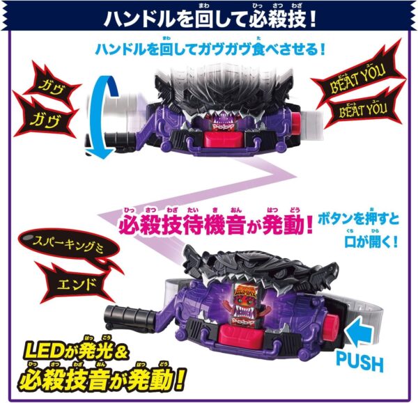 - Transformasi Otentik: Pasang Geats Raise Buckle pada Desire Driver, tutup penutup atas dan putar gagang untuk memulai proses transformasi! Lampu LED akan menyala dan suara transformasi akan terdengar, persis seperti di serialnya!