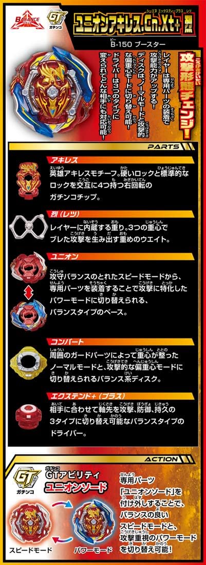 Takara Tomy Beyblade Burst B-150 Booster Union Achilles.Cn.Xt+ Retsu cocok untuk:
