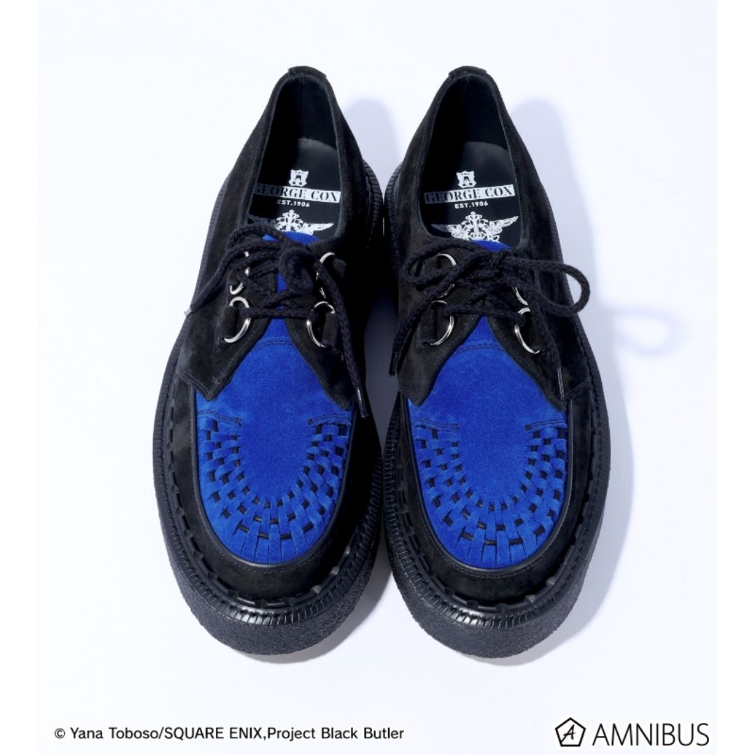 Hadir kolaborasi istimewa antara anime populer Black Butler: Boarding School Arc dan brand boots legendaris asal Inggris, George Cox. Seri SKIPTON 3588 atau Classic Creeper ini tampil dengan warna spesial terinspirasi Ciel Phantomhive. Detail premium seperti pola anyaman tangan, sole tebal khas No. VI crepe, serta jahitan Goodyear welt menghadirkan nuansa klasik dengan kesan kuat.