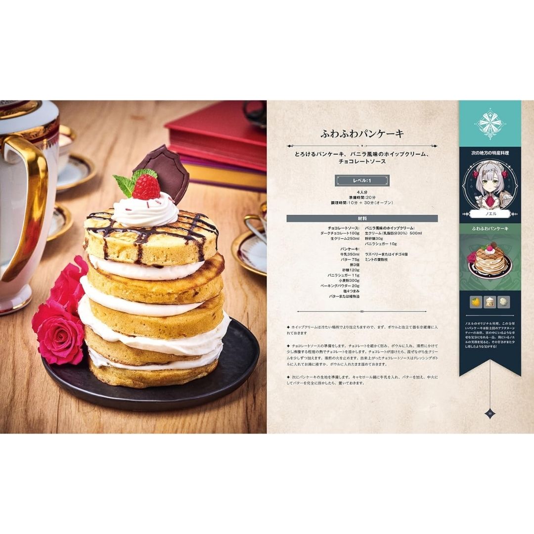 Buku Resep Genshin Impact Recipe Book Teyvat Gourmet Travelogue menghadirkan 60 resep khas dari dunia Teyvat! Buku ini menampilkan berbagai hidangan dari wilayah Mondstadt, Liyue, Inazuma, dan Sumeru yang bisa ditemukan dalam game. Mulai dari hidangan pembuka, makanan utama, hingga pencuci mulut dan minuman, semuanya dijelaskan dengan detail dan dilengkapi foto menarik.