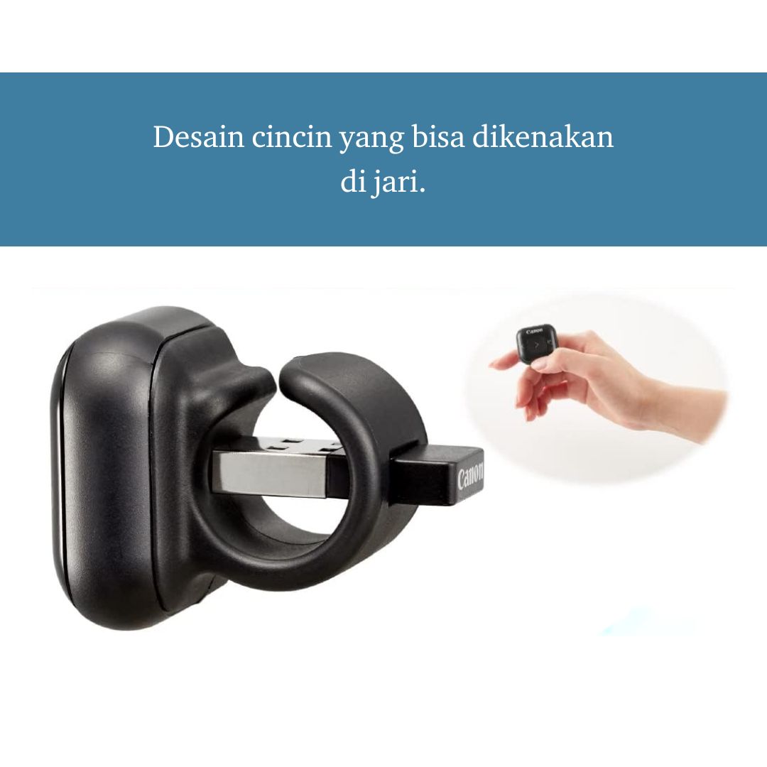 Canon PR5000-C Page Clicker Nirkabel memudahkan kontrol slide PowerPoint, iPad, atau Kindle dengan satu jari. Ring tipis nyaman dipakai, koneksi USB & Bluetooth ganda, dan desain antibakteri membuat presentasi praktis, higienis, dan interaktif.