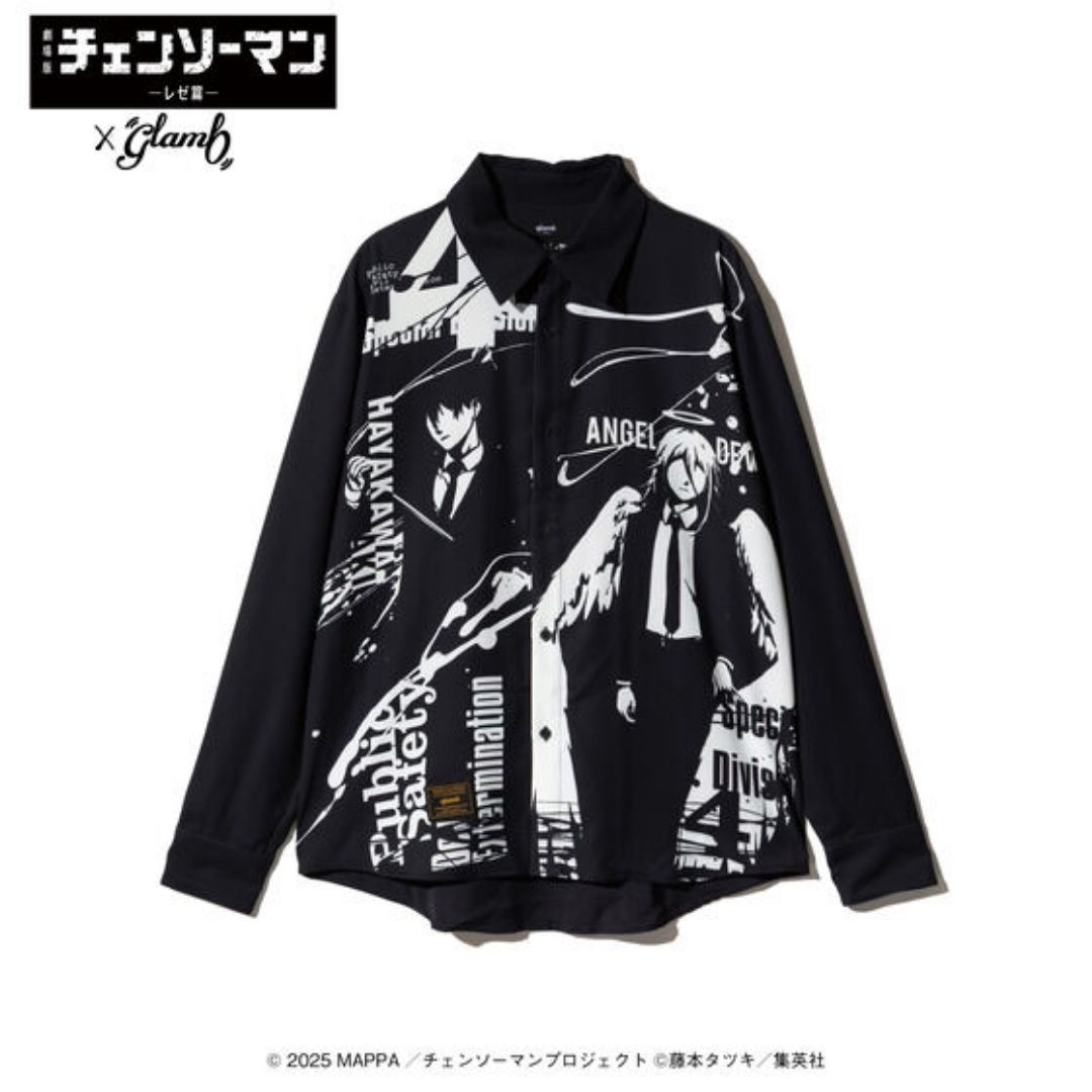 Chainsaw Man Reze Arc Shirt x glamb menampilkan Aki Hayakawa dan Angel Devil dengan gaya monochrome dan tipografi avant-garde. Siluet longgar dan panjang, cocok untuk streetwear stylish dan eksklusif.